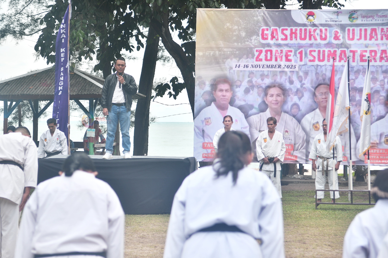 WARTABANGKA.ID, SUNGAILIAT – Ratusan karateka Institut Karate-do Indonesia (INKAI) mengikuti Gashuku atau Ghosuko (latihan gabungan) serta ujian Dan zona I Sumatera 2025, di Pantai Tanjung Pesona, Sabtu (15/11).