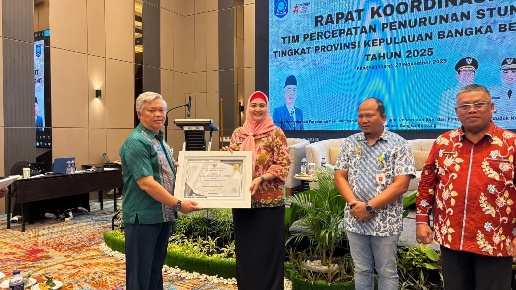 Bangka Selatan berhasil meraih 2 penghargaan provinsi, yakni Terbaik I Kinerja Penurunan Stunting Tahun 2024 serta Terbaik I Kinerja Perangkat Daerah Bidang Pengendalian Penduduk dan Keluarga Berencana Tahun 2025.