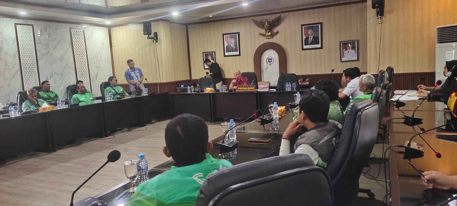 Puluhan pengemudi ojek online ini diterima ketua DPRD di Ruang Badan Musyawarah (Banmus) DPRD Babel. Kamis (20/11).