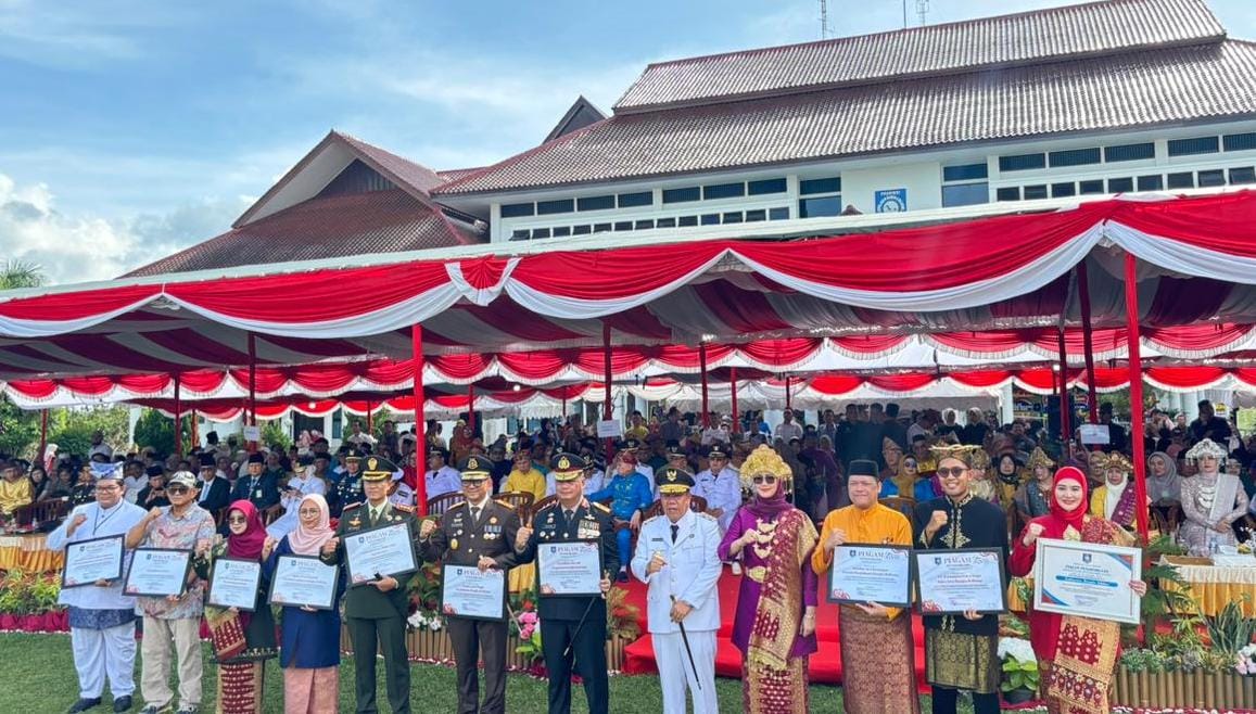 Wabup Debby menyampaikan apresiasinya dan terima kasih atas penghargaan yang diterima Bangka Selatan di momentum yang tidak hanya menjadi bagian dari perayaan HUT provinsi, tetapi juga momentum untuk merasakan kekompakan masyarakat Bangka Belitung.