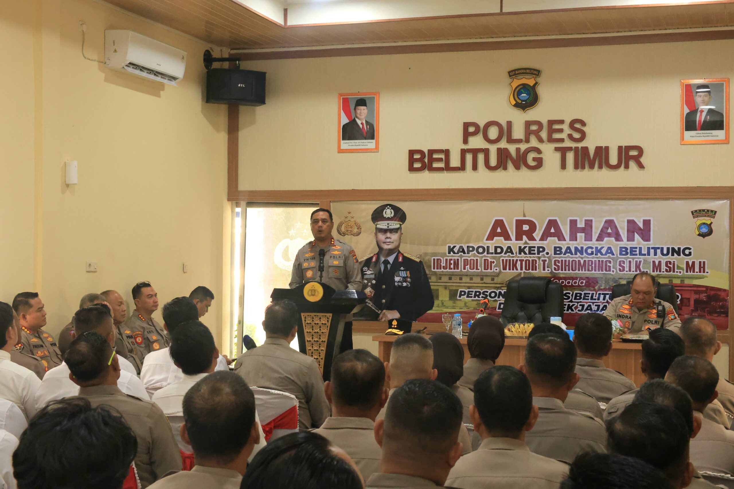 WARTABANGKA.ID, BELITUNG– Kapolda Kepulauan Bangka Belitung (Babel), Irjen Pol Viktor T. Sihombing menyambangi Polres Belitung Timur, Jumat (5/12). Kunjungan itu untuk memberikan arahan kepada jajarannya.