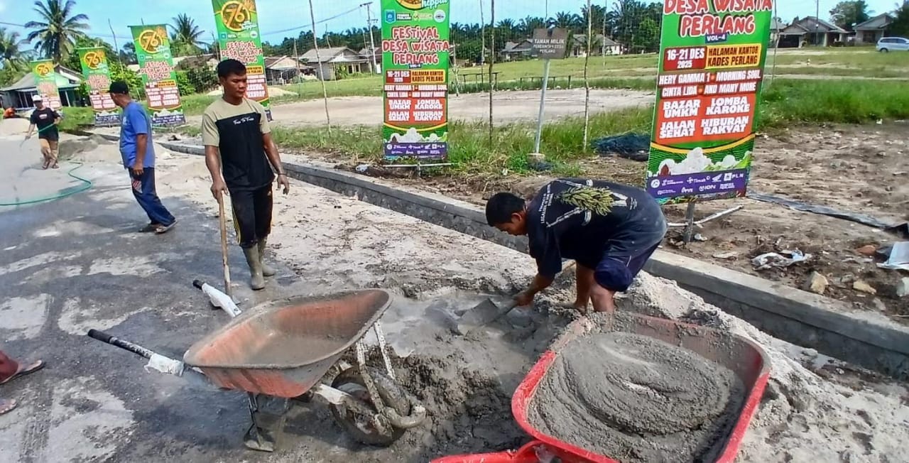 Inisiasi yang digerakkan oleh Kepala Desa Perlang, Yani Basaroni ini berhasil menyemen bahu jalan di RT 04 dan RT 05 sepanjang kurang lebih 200 meter pada Sabtu (13/12).