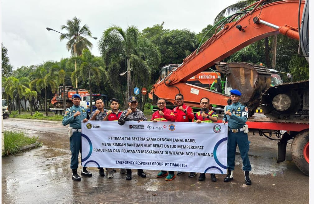 WARTABANGKA.ID – PT TIMAH Tbk bekerja sama dengan Pangkalan TNI Angkatan Laut (Lanal) Bangka Belitung mengirimkan bantuan lima unit alat berat jenis excavator untuk mempercepat pemulihan dan pelayanan untuk masyarakat terdampak bencana banjir dan tanah longsoran di Aceh, Sumatera Utara, dan Sumatera Barat.