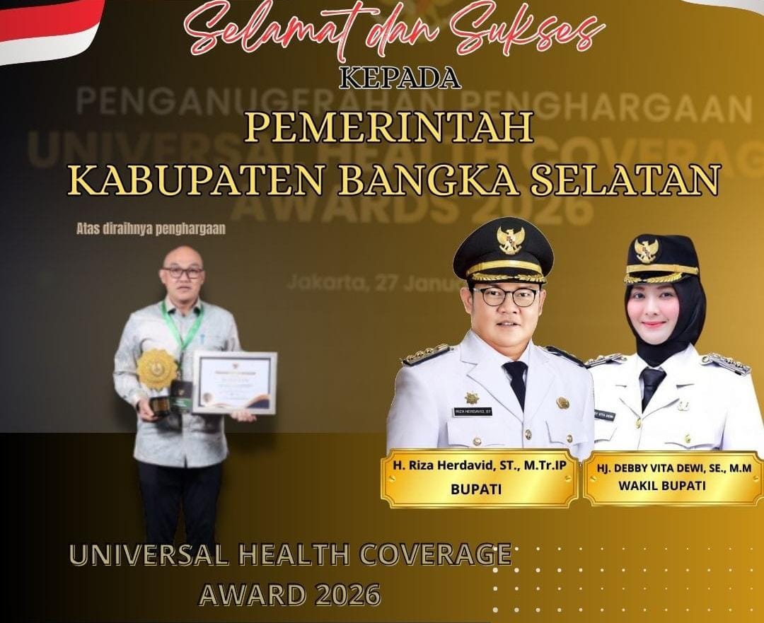 “Dengan penghargaan UHC Tahun 2026 ini, Pemerintah Kabupaten Bangka Selatan berkomitmen untuk terus meningkatkan kualitas pelayanan kesehatan sebagai bagian dari upaya mewujudkan kesejahteraan masyarakat secara menyeluruh,” pungkasnya.
