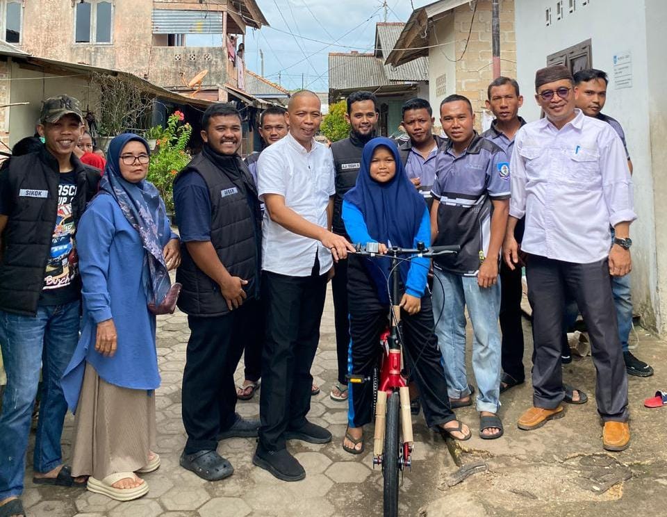 Seorang anak yatim bernama Rani menerima bantuan pendidikan berupa sepeda dan perlengkapan sekolah untuk menunjang aktivitas belajarnya.