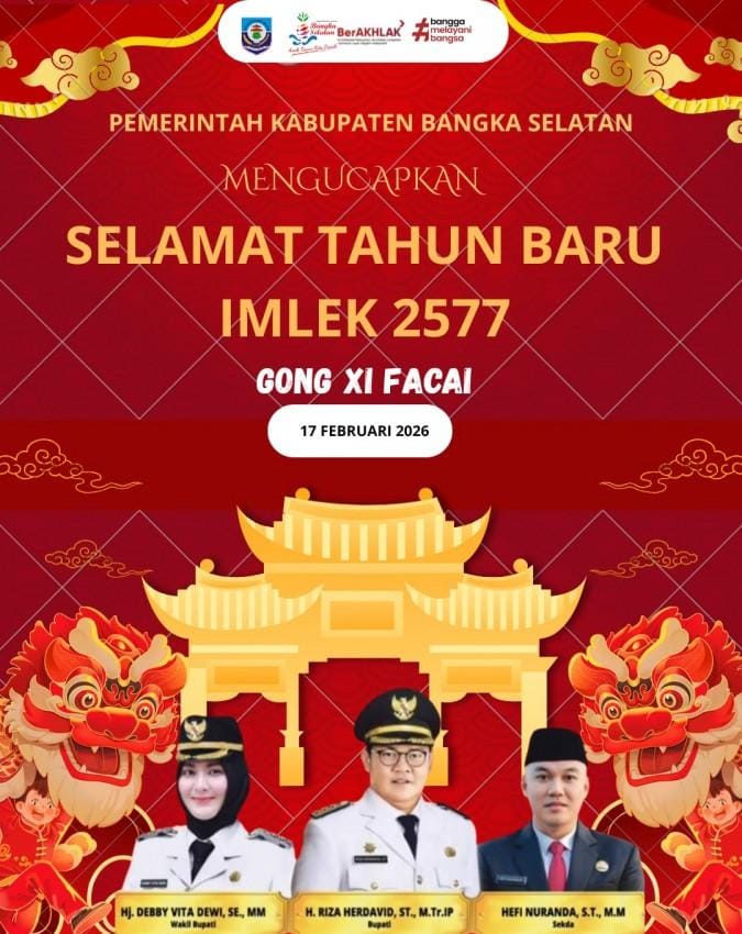 WARTABANGKA.ID, TOBOALI – Pemerintah Kabupaten (Pemkab) Bangka Selatan (Basel) menyampaikan ucapan Selamat Tahun Baru Imlek 2577 Kongzili kepada seluruh masyarakat Tionghoa yang merayakan pada tahun 2026 yang jatuh pada Selasa (17/2).