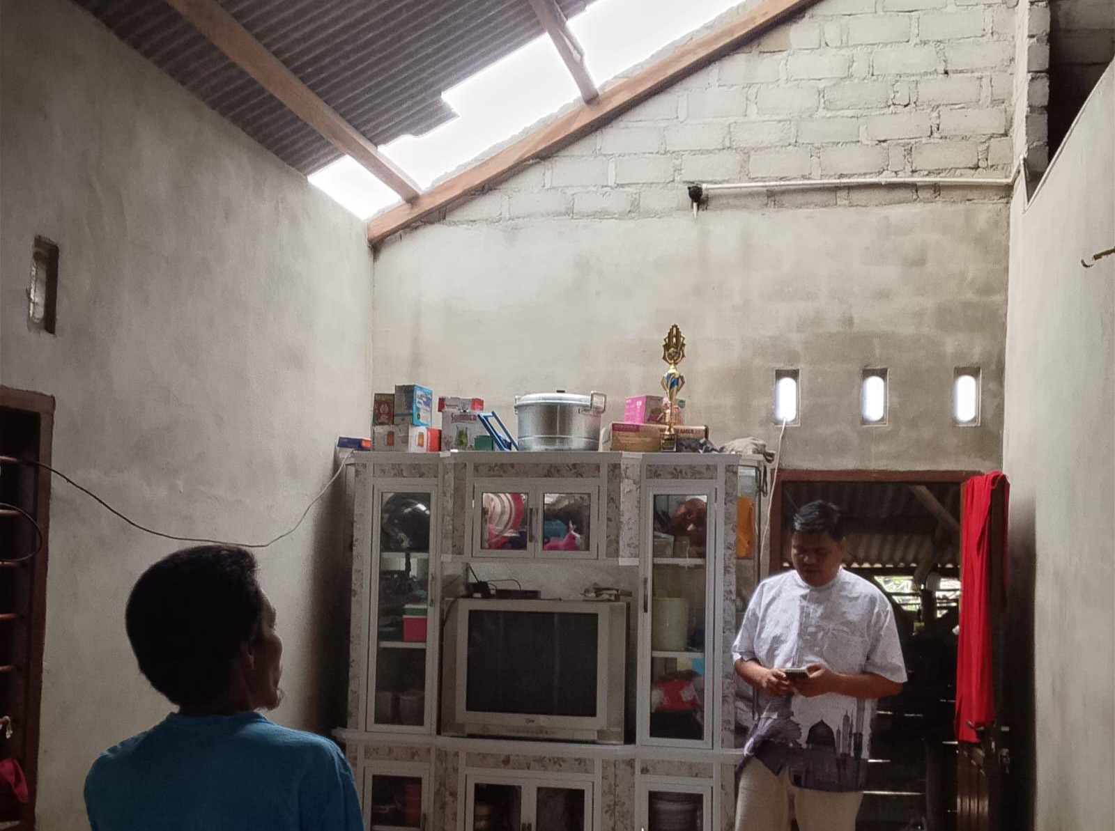“Takut hujan susulan datang lagi, tadi terpal sudah kita pasang secara darurat. Besok, asbes langsung kita pasang permanen,” tambahnya.