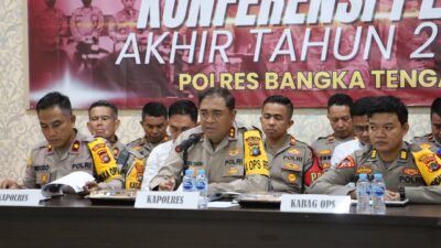 WARTABANGKA.ID, KOBA – Polres Kabupaten Bangka Tengah menggelar konferensi pers akhir tahun 2025 bersama awak…
