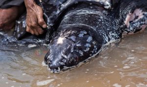 WARTABANGKA.ID, MENTOK – Dermochelys Coriacea atau Penyu Belimbing, ditemukan salah seorang nelayan, Albert saat terdampar…