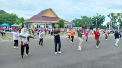 Maknai Bulan K3, PT Timah Gelar Senam Bersama Dengan Mitra Kerja dan Masyarakat
